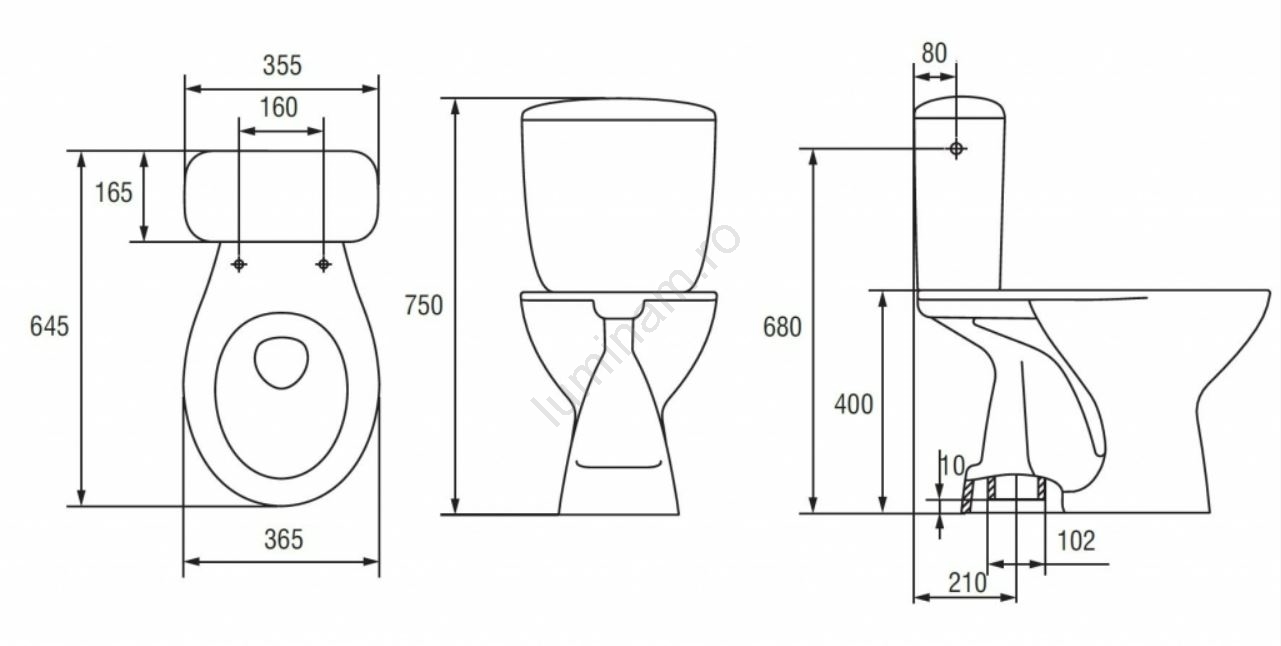 • Vas WC pe pardoseală din ceramică de înaltă calitate.