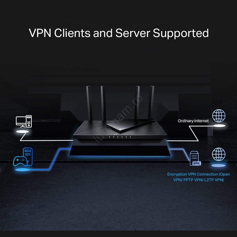 • Router Wi‑Fi 6 performant cu suport pentru conexiuni Multi‑Gigabit, proiectat pentru locuințe și birouri cu cerințe ridicate de rețea.