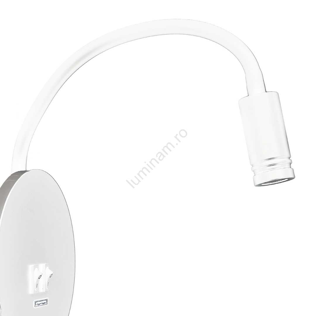 • Lampă de perete flexibilă LED BASE cu USB, LED/8W + LED/2W/230V, albă
