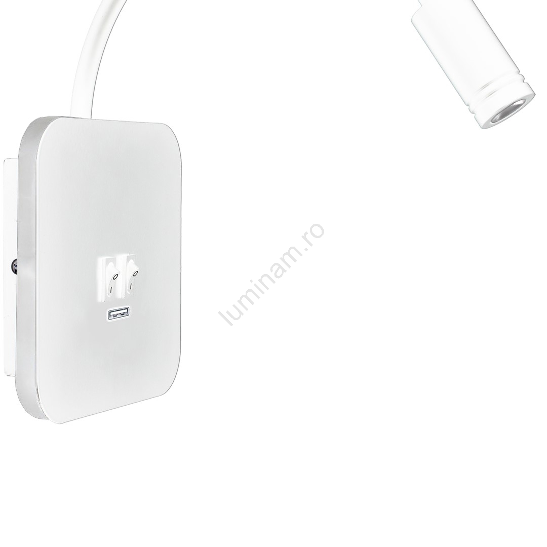 Lampă de perete flexibilă LED BASE cu USB, LED/8W + LED/2W/230V, albă