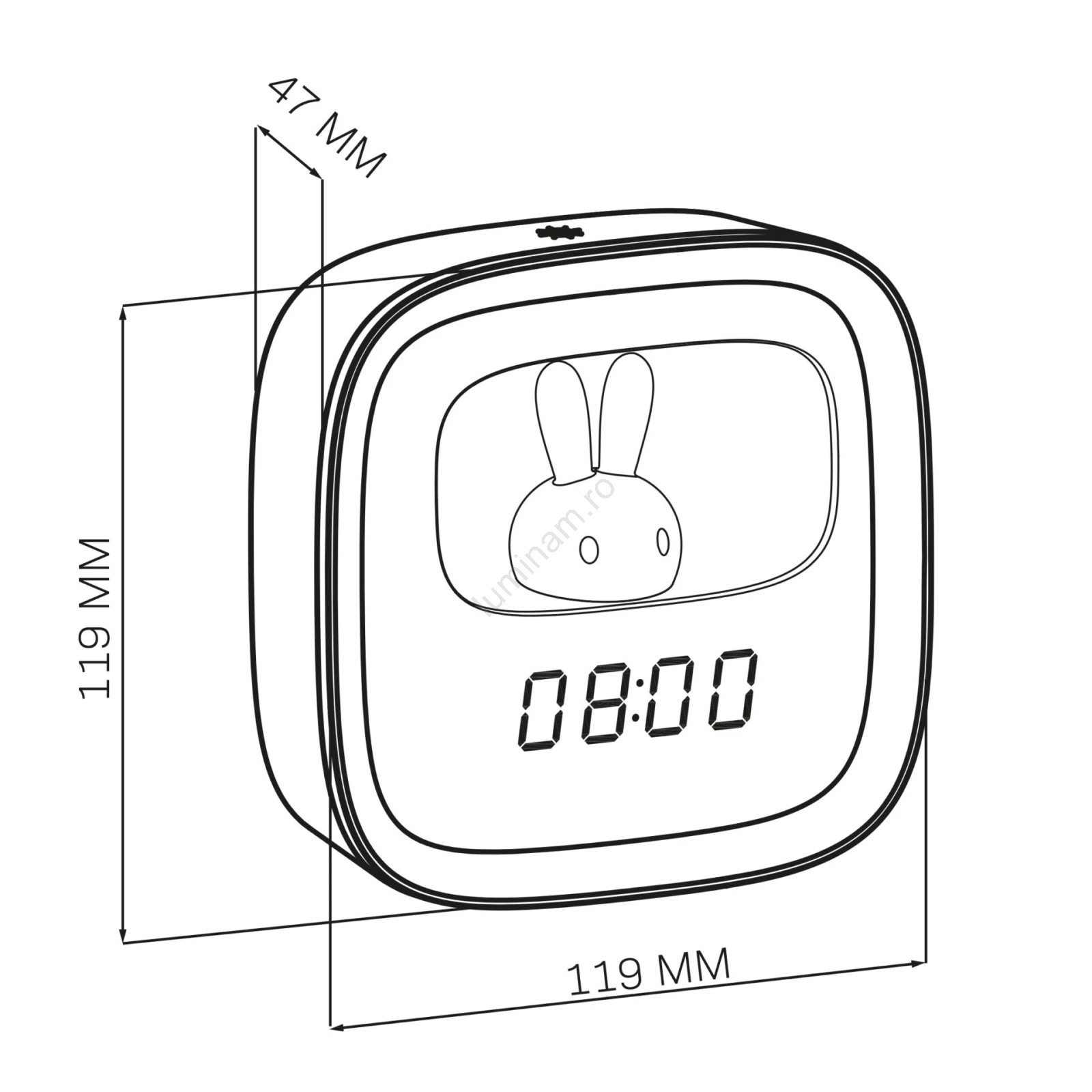 Lampă de noapte LED reglabilă cu ceas deșteptător BUNNY LED/1,2W/5V 3000K