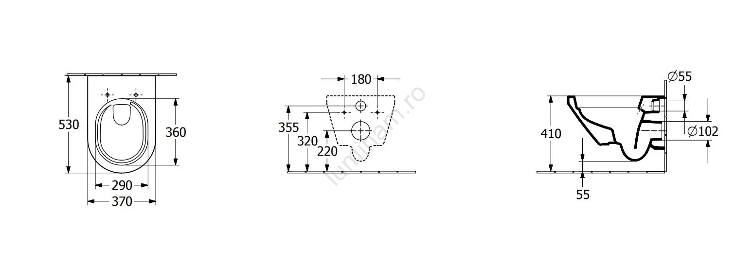 • Designul suspendat al toaletei lasă podeaua liberă și ușurează curățarea.