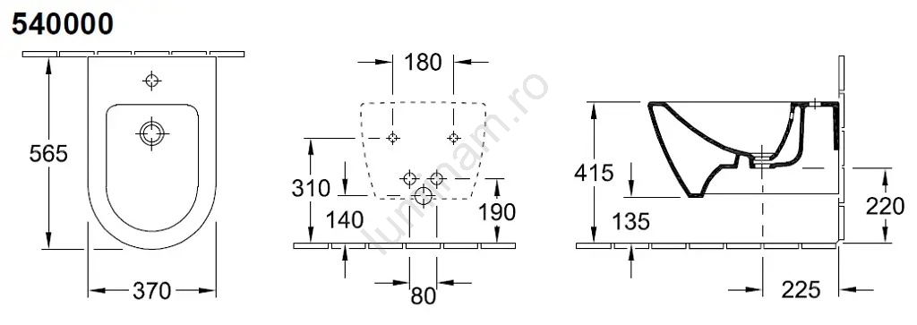 • Bideu suspendat din ceramică sanitară rezistentă, cu suprafață netedă, ușor de curățat.