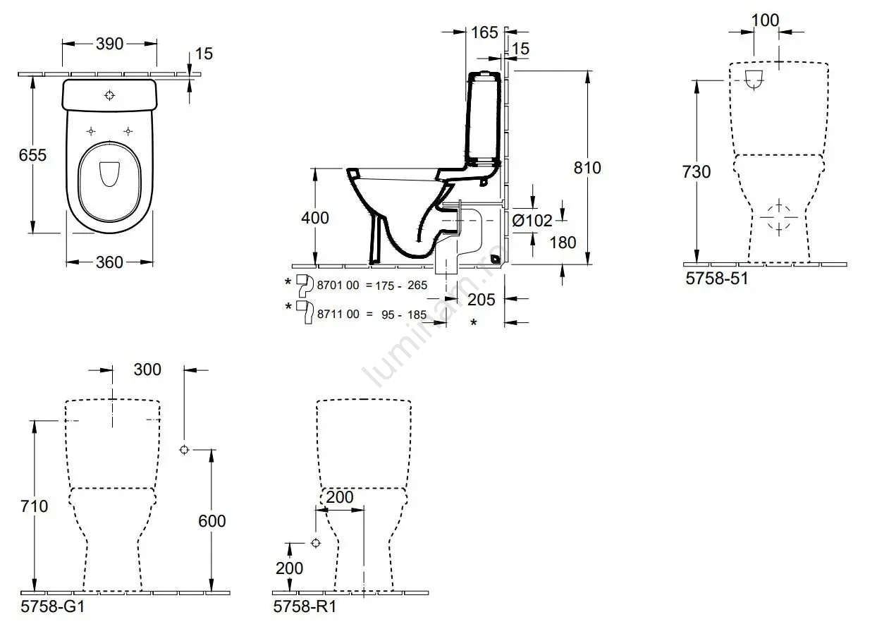 Villeroy & Boch O.NOVO - vas WC combinat din ceramică, alb, 56581001