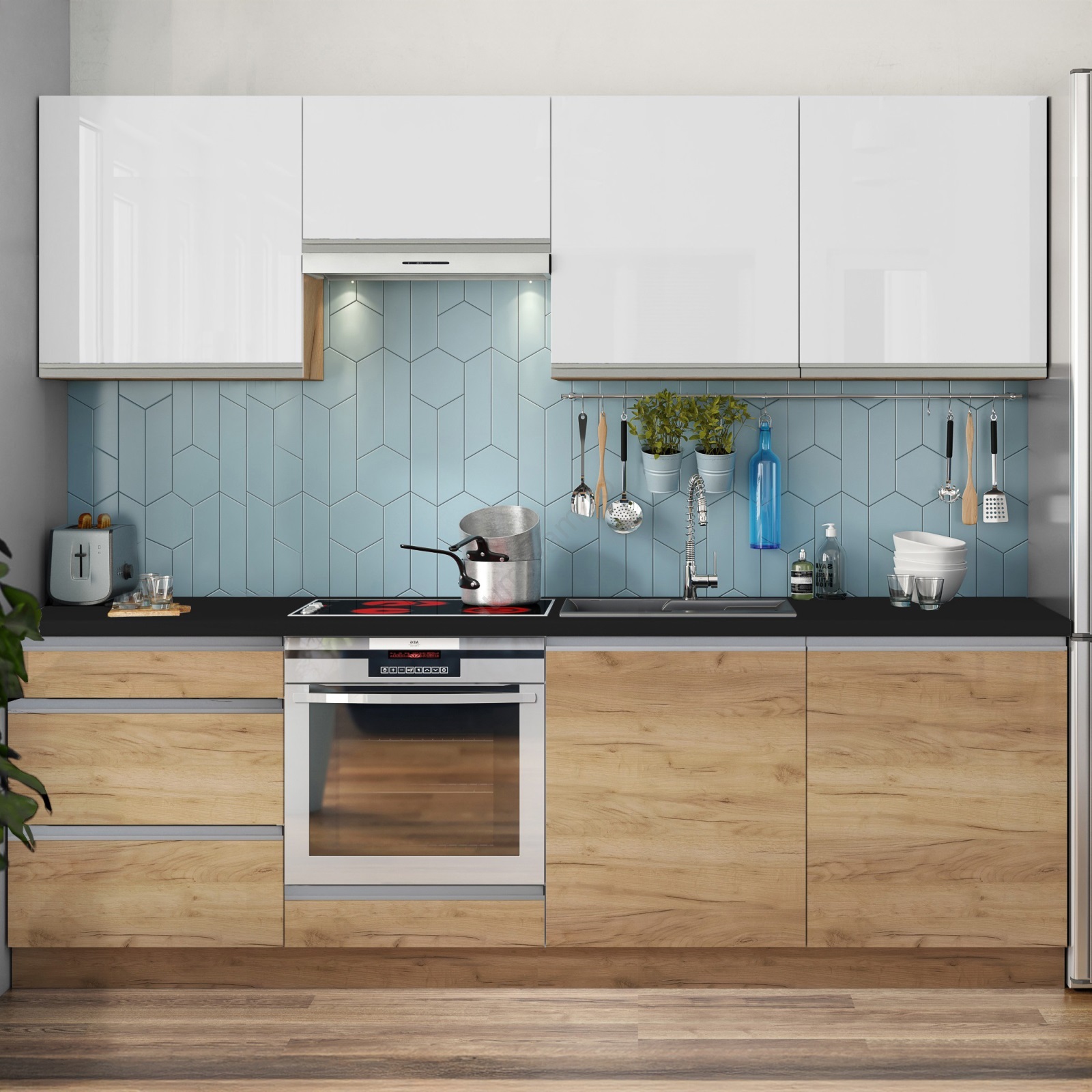 • Aranjamentul dulapurilor este modular, puteți adapta bucătăria după propriile preferințe.
