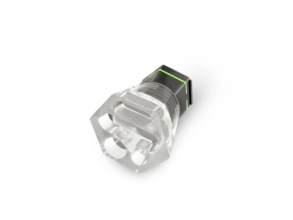 • Dozatorul are un design transparent cu detalii negre și verzi și simplifică semnificativ manipularea medicației.