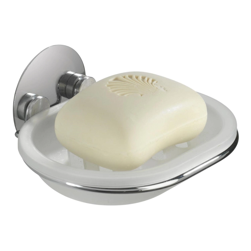 WENKO 18776100 - Suport pentru săpun TURBO-LOC, rotund, din oțel, 13 x 11 cm, crom lucios/alb