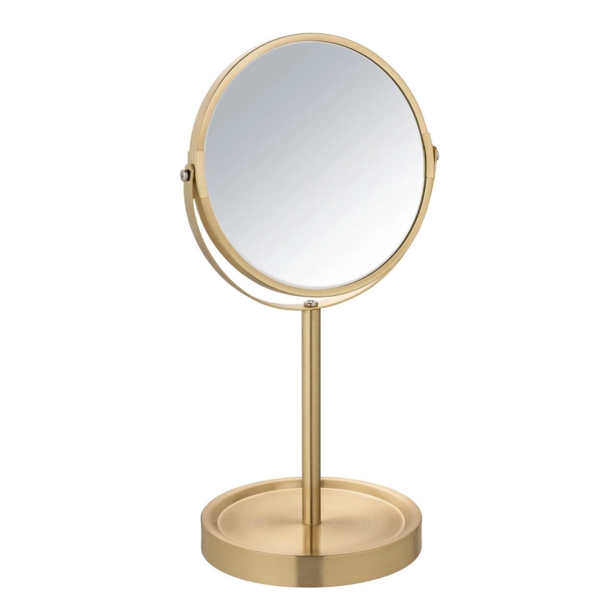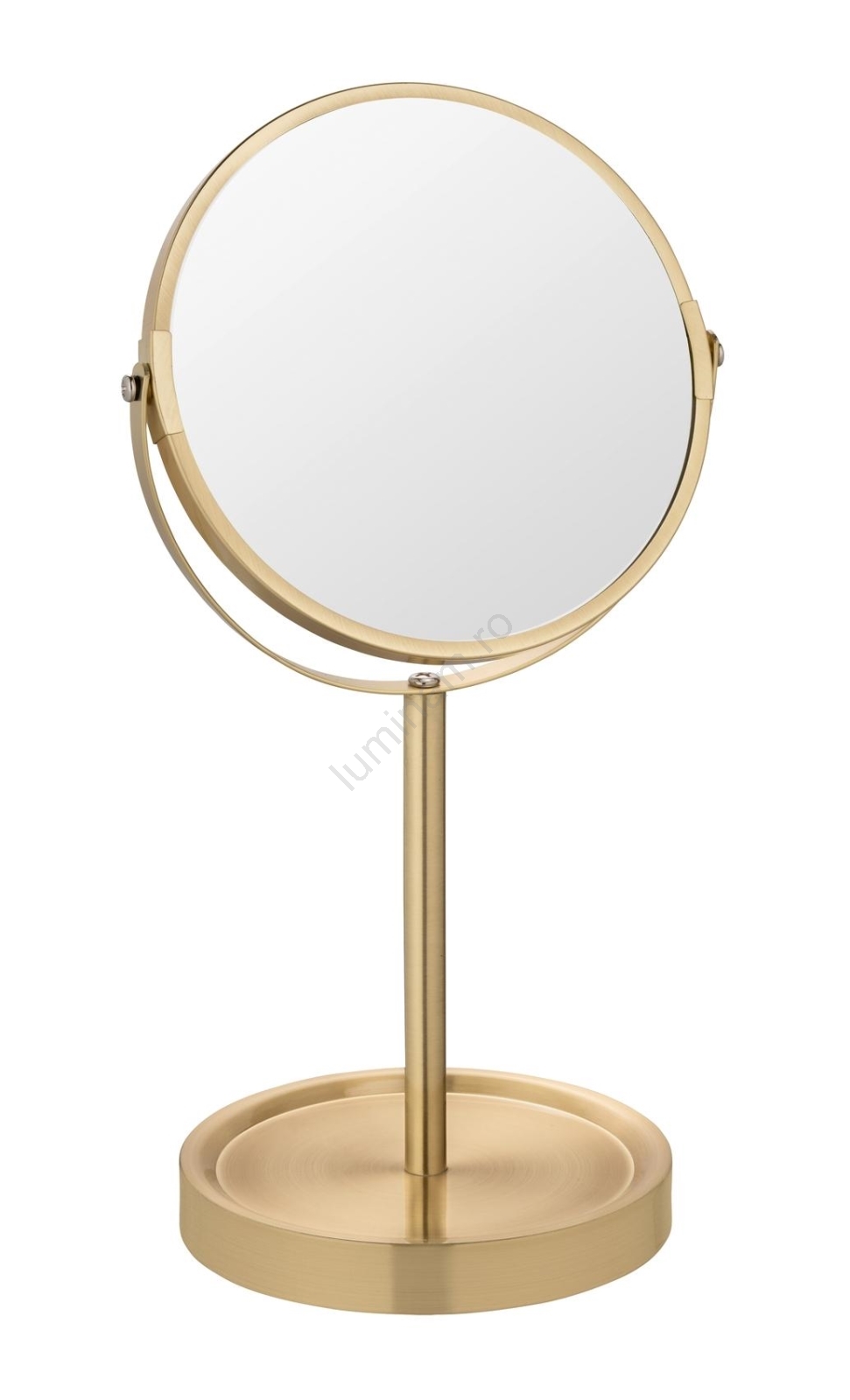 • Oglindă cosmetică de masă elegantă, cu finisaj auriu mat.