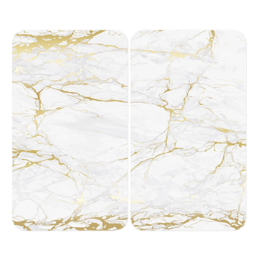 • Set elegant de 2 capace pentru plită cu motiv marmorat în nuanță alb-auriu.