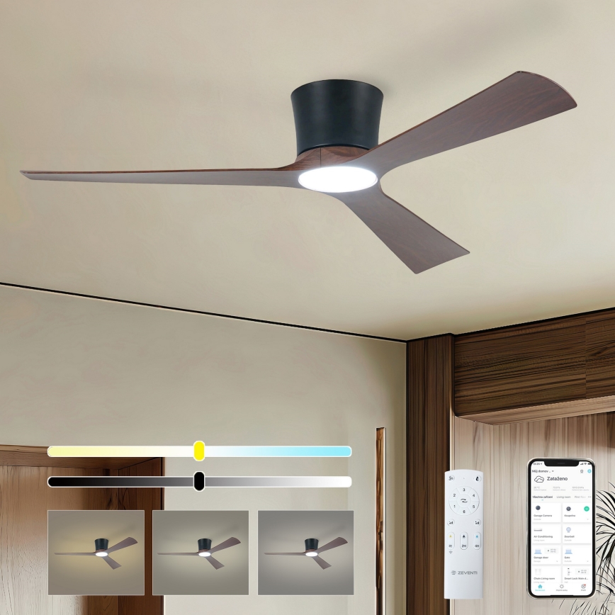 ZEVENTI - Ventilator de tavan LED dimabil AUREX LED/24W/230V 3000/4000/6000K Wi-Fi Tuya negru/nuc + telecomandă