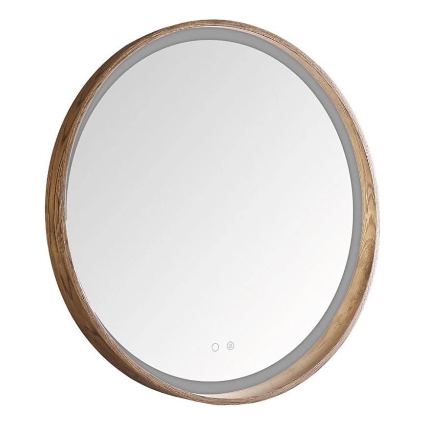 Zuma Line - Oglindă LED încălzită pentru baie, montaj pe perete, cu retroiluminare LED, 36W, 230V, temperatură de culoare selectabilă 3000/4000/6000K, Ø 80 cm, IP44, finisaj stejar
