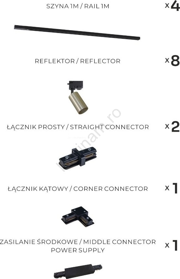 • Zuma Line - Spot pe șină 8xGU10/35W/230V negru/auriu
